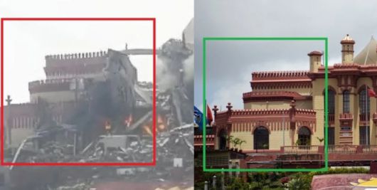 SNS에 나돈 가짜 사진(왼쪽)과 미군의 공격 후 촬영한 실제 사진. 콘트레라스 캡처 |