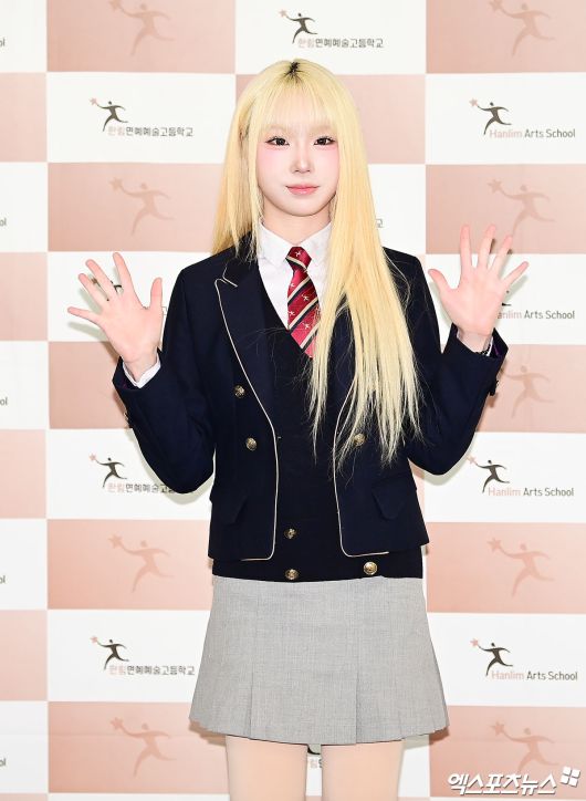 (엑스포츠뉴스 박지영 기자) 8일 오전 서울 장지동 한림연예예술고등학교에서 '제15회 졸업식'이 열렸다. 이날 한림예고 졸업식에 참석한 엔젤노이즈 해나가 포토타임을 갖고 있다. 박지영 기자 jypark@xportsnews.com
