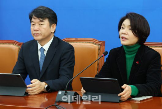 [이데일리 노진환 기자] 한정애 더불어민주당 정책위의장이 8일 오전 서울 여의도 국회에서 열린 정책조정회의에서 모두발언을 하고 있다.