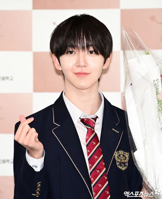 이날 한림예고 졸업식에 참석한 킥플립 동현이 포토타임을 갖고 있다.