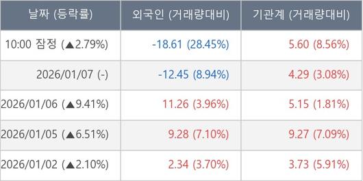 [표] 외국인ㆍ기관 순매매량 (단위 만주)