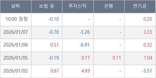 [표] 주요 기관별 순매매량 (단위 만주)