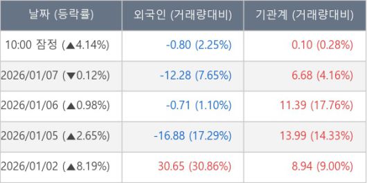 ※ 사모펀드 등 일부 기관의 순매매량은 표시되지 않음
