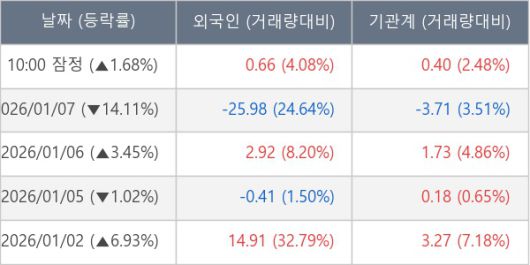 ※ 사모펀드 등 일부 기관의 순매매량은 표시되지 않음