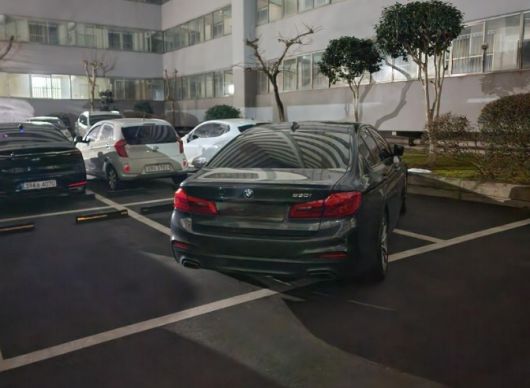 게시글에는 한 BMW 차량이 주차장 3칸을 대각선으로 주차한 모습이 담긴 사진도 올라왔다.