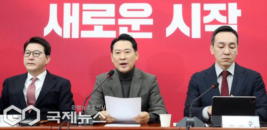 (서울=국제뉴스) 장동혁 국민의힘 대표가 8일 오전 서울 여의도 국회에서 열린 최고위원회의에서 발언을 하고 있다./사진=이용우 기자