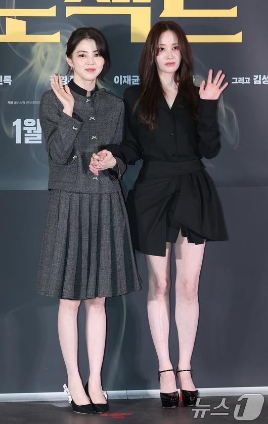 (서울=뉴스1) 권현진 기자 = 배우 한소희와 전종서(오른쪽)가 8일 서울 송파구 롯데시네마 월드타워점에서 열린 영화 '프로젝트 Y'(감독 이환) 언론시사회에 참석해 포즈를 취하고 있다. '프로젝트 Y'는 화려한 도시 그 한가운데에서 다른 내일을 꿈꾸며 살아가던 미선(한소희 분)과 도경(전종서 분)이 인생의 벼랑 끝에서 검은 돈과 금괴를 훔치면서 벌어지는 이야기를 그린 작품이다. 2026.1.8/뉴스1