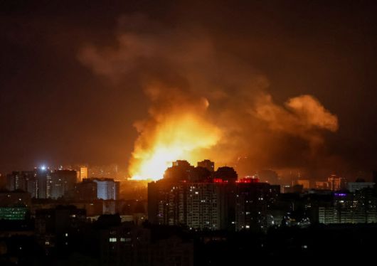 지난해 6월 17일(현지시간) 우크라이나 키이우에서 러시아의 드론 공습 도중 드론이 폭발하며 도시 상공의 하늘을 밝히고 있다. (사진=로이터) |