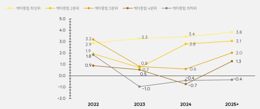 ESG 점수와 ROA 평균 간 연관성은 2025년으로 갈수록 뚜렷해졌다. 서스틴베스트는 지속가능경영보고서 자율 공시 확대, 기업지배구조보고서 의무화 등으로 ESG 정보의 신뢰도가 높아진 영향이라고 설명했다.