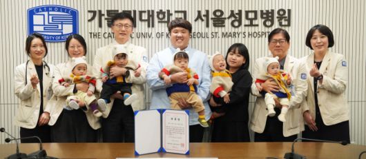 서울성모병원은 자연임신 출생 사례인 다섯쌍둥이가 병원이 추구하는 생명 존중의 정체성을 상징한다고 보고 홍보대사 위촉을 추진했다고 8일 밝혔다. 이들 오남매는 2024년 9월 이 병원에서 사공혜란·김준영 씨 부부 사이에 태어났다. 자연임신 다섯쌍둥이는 국내는 물론 전 세계적으로도 드물다. 특히 다섯쌍둥이의 출생 과정은 고위험 산모 진료, 다태아 관리, 미숙아 집중 치료 등 필수의료 분야에서 병원이 보유한 고난도 진료 역량을 입증한 임상 사례라는 점에서도 의미가 크다.