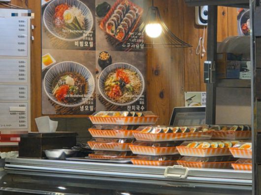 8일 오전 서울 종로구의 한 김밥 가게 모습. 진열대에 김밥이 포장돼 있지만 손님은 없었다./사진=김서현 기자. |