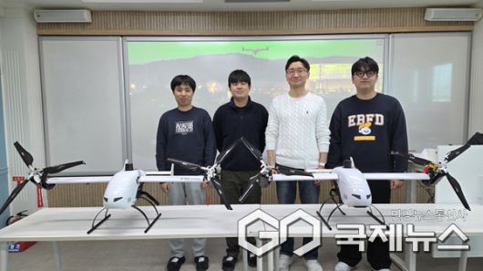 (청주=국제뉴스) 이재기 기자 = 충북대학교(총장 고창섭) 전자정보대학 문성태 교수 연구팀이 개발한 군집 드론 운영 기술이 틸트로터 드론을 개발·제조하는 ㈜나르마에 기술이전됐다.