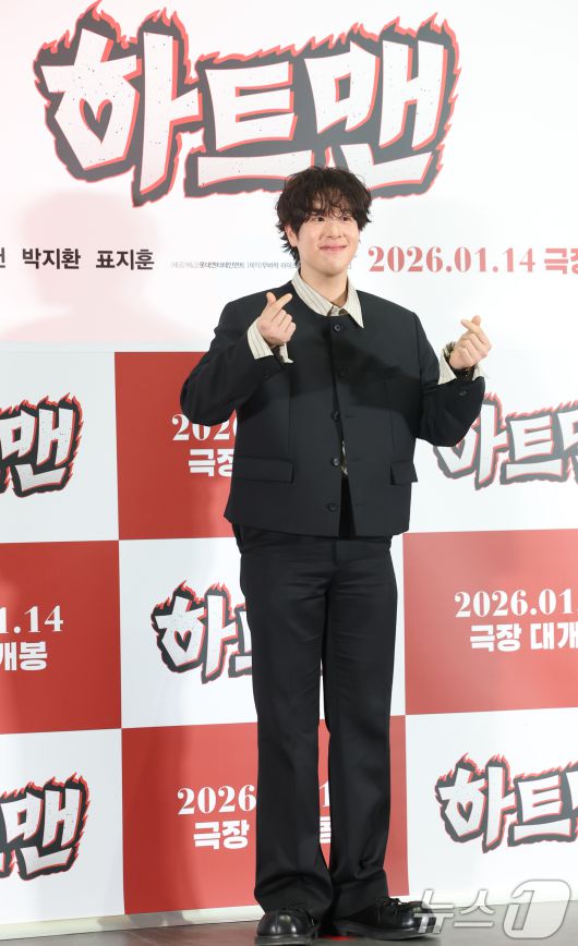 (서울=뉴스1) 권현진 기자 = 배우 표지훈이 8일 서울 송파구 롯데시네마 월드타워점에서 열린 영화 ‘하트맨’ 언론시사회에 참석해 포즈를 취하고 있다. ‘하트맨’은 돌아온 남자 승민(권상우 분)이 다시 만난 첫사랑(문채원 분)을 놓치지 않기 위해 고군분투하지만, 첫사랑에게 절대 말할 수 없는 비밀이 생기며 벌어지는 코미디다. 2026.1.8/뉴스1