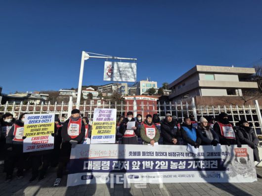 이들은 이날 관저 앞에서 오후 7시쯤 촛불문화제를 연 뒤 1박 2일 노숙 농성에 돌입한다. 3명의 노동자가 이곳에 남아 별도 천막 없이 은박 담요만 덮고 하룻밤을 보낼 계획이다.