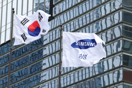 서울 서초구 삼성전자 서초사옥 앞에서 삼성 깃발이 휘날리고 있다. 최현수 기자 emd@hani.co.kr |