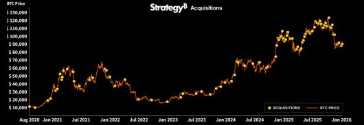 스트래티지가 2020년 이후 매입한 비트코인 규모와 비트코인 가격 변동 추이. 스트래티지 홈페이지 갈무리. |