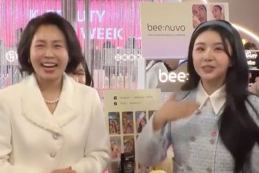 이재명 대통령의 부인 김혜경 여사와 그룹 피에스타 멤버 차오루가 7일 중국 상하이의 K-뷰티 행사장에서 만난 영상이 8일 공개됐다. 김 여사와 차오루는 K-뷰티의 우수성에 대해 대화하며 활짝 웃었다.