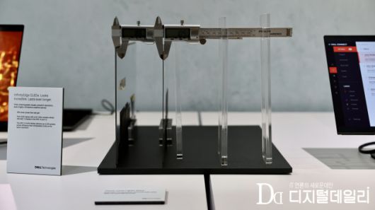 현장 전시대는 델이 이번 신제품을 위해 얼마나 치열한 공학적 고민을 거쳤는지 보여주는 실험실과 다를 바 없다. 관람객들의 발길을 가장 오래 붙잡은 것은 디스플레이 패널 두께를 비교해 놓은 코너였다. 델은 정밀 측정 도구인 캘리퍼스를 이용해 기존 패널과 신형 OLED 패널의 두께를 적나라하게 비교했다.