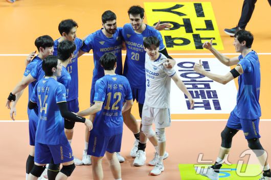 우리카드의 외국인 선수 하파엘 아라우조가 20점으로 공격을 이끌었고, 아시아쿼터 알리 하그파라스트도 17점으로 힘을 보탰다.