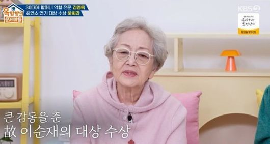 김영옥은 심지어 3살 연상인 이순재가 자신의 아들 역할을 했다며 "상은 이것저것 타봤지만, 대상은 못 타봤다. 이순재 선생님은 내가 착각했다. 일찍 타신 줄 알았다. 너무 좋은 역할을 많이 하셨기에 또 잘하고. 아무도 대상을 안 드렸다는 게 이상했다"라고 말했다.