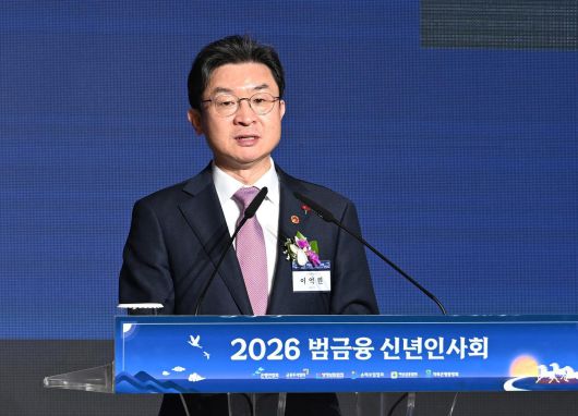 이억원 금융위원장이 5일 오후 서울 중구 롯데호텔에서 열린 ‘2026 범금융 신년인사회’에 참석해 신년사를 하고 있다. 공동취재 |