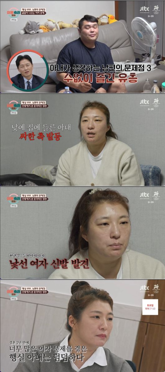 아내는 남편의 외도 횟수를 묻는 질문에 "결혼 후 여자 문제가 30번은 넘지 않을까 싶다"고 답해 스튜디오를 충격에 빠뜨렸다. 남편은 평소에도 노래방 등에서 여자를 끼고 노는 유흥을 서슴지 않았던 것으로 밝혀졌다.