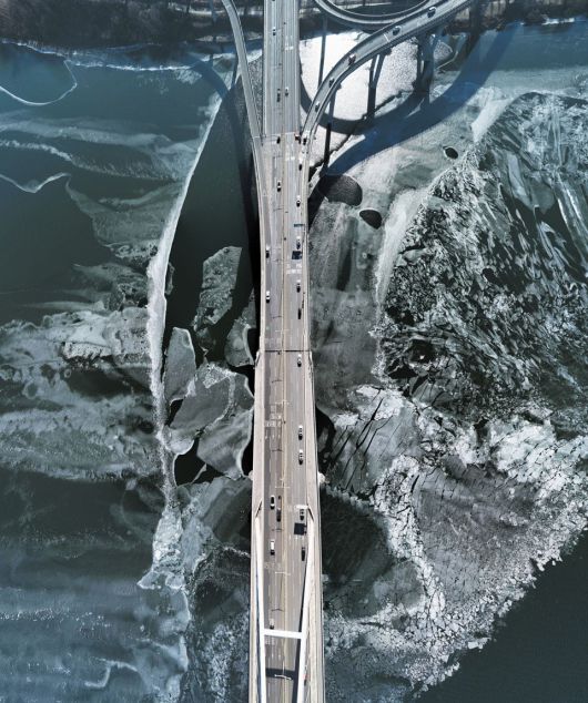 8일 서울 강동구 암사동 구리암사대교. 한강이 얼어붙었다. 이날 서울의 아침 기온은 영하 8도까지 떨어졌다. 강풍이 불 어 체감온도는 영하 15도에 달했다. 기상청은 “한반도 북쪽 상공에서 영하 30도 이하의 찬 공기가 남하해 기온이 뚝 떨 어졌다”며 “이번 강추위는 9일 낮부터 점차 누그러질 것”이라고 했다.