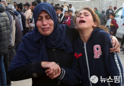 [칸유니스=뉴스핌] 장일현 특파원 = 8일(현지 시간) 팔레스타인 가자지구 남부도시 칸유니스에 있는 나세르 병원에서 이스라엘 군의 폭격으로 사망한 희생자에 대한 장례식이 열린 가운데 유가족들이 오열하고 있다. 2026.1.8. ihjang67@newspim.com |