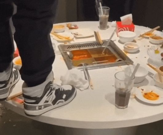중국 상하이의 훠궈 전문점에서 10대 남성이 테이블에 올라가 훠궈에 소변을 봤다가 거액의 배상금을 물게 됐다. [웨이보 캡처] |