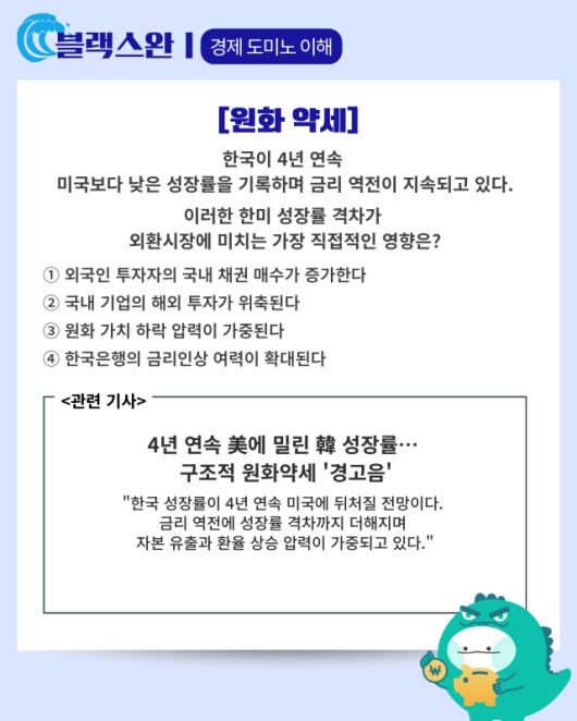 ▶기사 바로가기: 韓 성장률 4년 연속 美에 밀리나···구조적 원화약세 경고음 커져