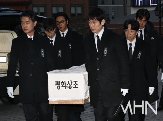 고인의 금관문화훈장은 배우 이정재와 정우성이 운반하며, 운구는 설경구, 유지태, 박철민, 조우진, 주지훈 등 후배들이 맡았다. 장례 미사와 영결식을 마친 뒤 운구 행렬은 서울추모공원으로 이동하며, 고인은 장지인 양평 별그리다에서 영면에 든다.