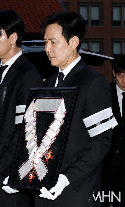 고인의 금관문화훈장은 배우 이정재와 정우성이 운반하며, 운구는 설경구, 유지태, 박철민, 조우진, 주지훈 등 후배들이 맡았다. 장례 미사와 영결식을 마친 뒤 운구 행렬은 서울추모공원으로 이동하며, 고인은 장지인 양평 별그리다에서 영면에 든다.