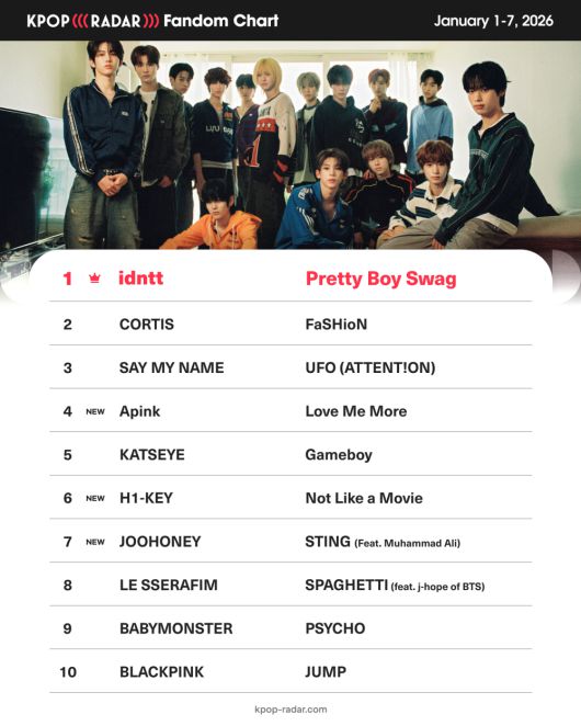 케이팝레이더 측은 "높은 뮤직비디오 조회 수와 함께 SNS 전반에서 두드러진 증가율을 기록하며 위클리 팬덤 차트 1위에 올랐다"고 설명했다.