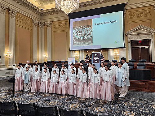 (워싱턴=연합뉴스) 박성민 특파원 = 미국 한인 어린이로 구성된 뉴저지 어린이 합창단이 8일(현지시간) 미국 워싱턴DC의 미 의회 건물에서 열린 미주한인유권자연대(KAGC) 주최 '미주 한인의 날' 기념행사에서 공연하고 있다. 2026.1.9