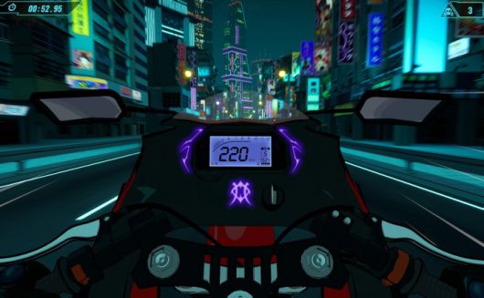 조작 역시 단순한 속도 경쟁에 그치지 않는다. 플레이어는 윌리로 가속을 높이고, 슬라이딩으로 장애물을 피하며, 점프 램프를 활용해 혼잡한 도로 위를 공중 돌파해야 한다. 속도를 올리고 줄이는 타이밍을 세밀하게 조절하지 않으면 클리어가 어려울 정도로, 반사 신경과 판단력이 중요한 구조다. 최고 속도는 무려 시속 299km에 달해 극한의 속도감을 체험할 수 있다.