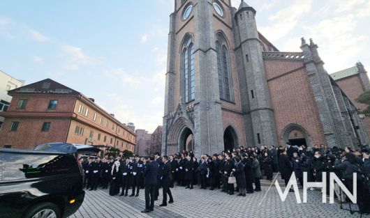 (MHN 이지숙 기자) 故 안성기의 추모 미사 및 영결식이 9일 오전 서울 중구 명동성당에서 엄수됐다.