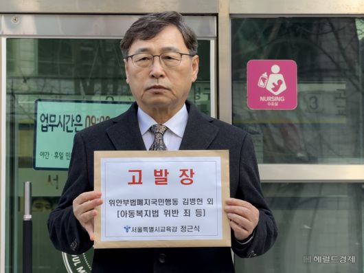 정근식 서울시교육감은 이날 “단순한 표현의 자유를 넘어서 교육환경을 훼손하고 미성년인 학생들에게 심각한 정서적·정신적 피해를 초래한 중대한 사안”이라며 고발장을 접수했다.