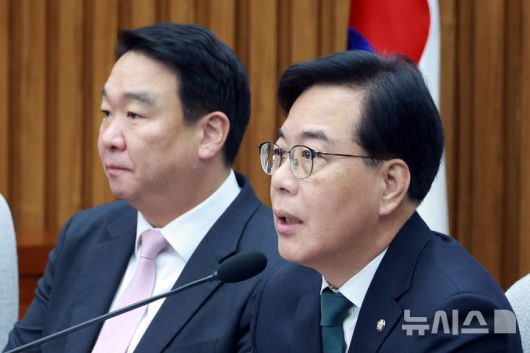 [서울=뉴시스] 고승민 기자 = 송언석 국민의힘 원내대표가 지난 6일 서울 여의도 국회에서 열린 원내대책회의에서 발언하고 있다. 2026.01.06. kkssmm99@newsis.com |