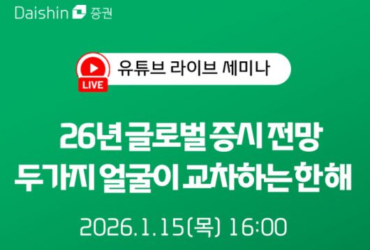 대신증권이 오는 15일 '2026년 글로벌 증시전망' 라이브 세미나를 진행한다.