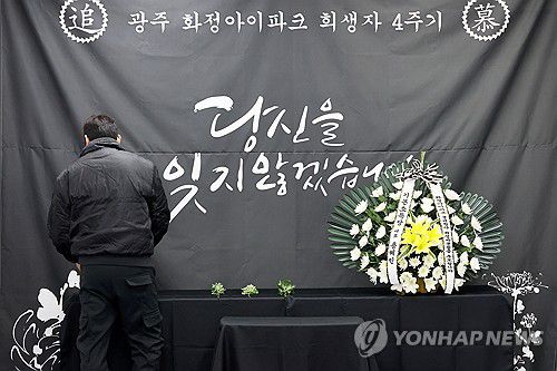 (광주=연합뉴스) 조남수 기자 = 화정 아이파크 사고 4주기를 이틀 앞둔 9일 광주 서구 화정아이파크 2단지 옆 상가에 25년 광주 산재 희생자 합동분향소가 설치돼 있다. 2026.1.9