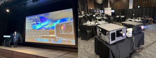 지난 7일, 서울 반얀트리 클럽 앤 스파에서 열린 세미나의 하이라이트는 PT-RQ45K의 실물 시연과 전환 테스트였다. 파나소닉은 현장에서 기존 모델(PT-RQ35K)과 신제품 PT-RQ45K의 화면을 실시간으로 교체하며 비교하는 테스트를 진행하였는데, 확연히 밝아진 광량과 선명해진 색 재현력이 현장 관계자들의 시선을 단번에 사로잡았다.