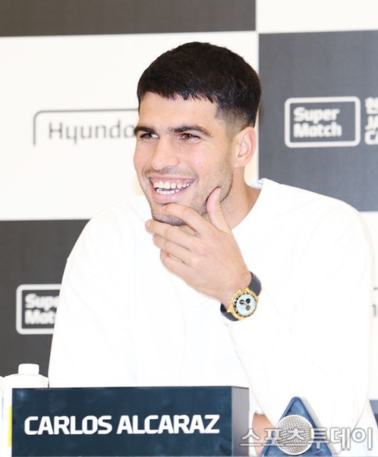 [스포츠투데이 권광일 기자] 테니스 세계 랭킹 1,2위 카를로스 알카라스와 야닉 시너가 9일 오후 서울 영등포구 여의도 현대카드 본사에서 열린 현대카드 슈퍼매치 14 야닉 시너와 카를로스 알카라스의 기자회견에 참석하고 있다. 2026.01.09. [스포츠투데이 권광일 기자 sports@stoo.com]