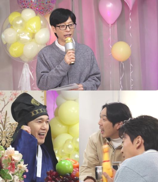 사회자는 국민MC 유재석으로, 마이크를 든 유재석은 처음 맡는 60돌잔치 사회도 맛깔나게 진행을 하고 있어 눈길을 끈다.