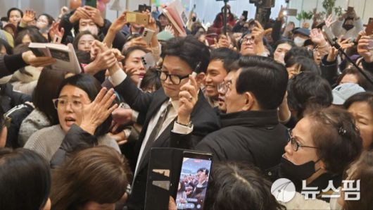 [서울=뉴스핌] 신정인 기자 = 한동훈 전 국민의힘 대표가 9일 서울 동대문구에서 열린 국민의힘 동대문을 당협 신년회 초청 강연을 마친 뒤 지지자들과 인사하고 있다. 2026.01.09 allpass@newspim.com |