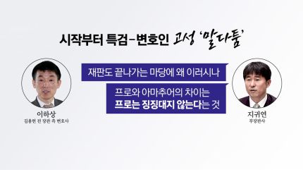 이 변호사가 서증조사 인쇄물을 많이 출력 못 해 복사해서 가져오고 했지만, 특검 측이 준비된 피고인 먼저 진행하자고 하며 양측 목소리가 커진 건데, 재판장인 지귀연 부장판사는 "재판도 끝나가는 마당에 왜 이러시나"라며 "프로는 징징대지 않는다"고 말했습니다.