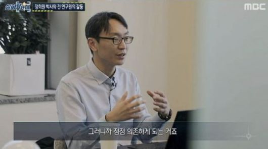 8일 정 씨는 MBC ‘실화탐사대’에 출연해 여성 연구원 A씨와의 관계에 대해 밝혔다.