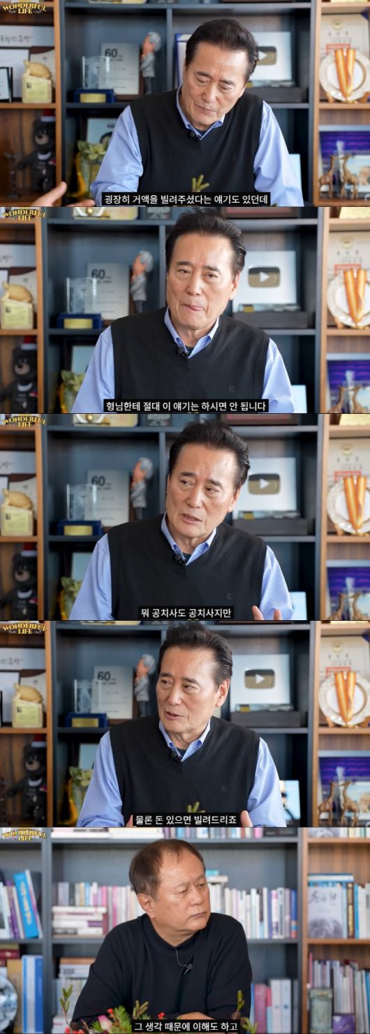 송승환은 "듣기로는 송대관 선배가 경제적으로 힘드실 때 형님이 거액을 빌려주셨다는 얘기도 있던데 형님이 그렇게 잘하시니까 형님한테 운이 오는 것"이라고 밝혔다.