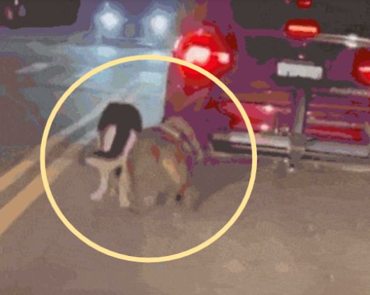 미국 롱아일랜드시티 한 도로에서 지난 4일 포착된 모습. 한 자동차 뒤에 셰퍼드 한 마리와 핏불 한 마리가 묶인 채 끌려가고 있다. /사진=뉴시스(SNS 캡처) |