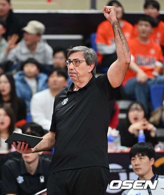 [OSEN=부산, 이석우 기자] 9일 부산 강서실내체육관에서 진에어 2025-2026 V리그 남자부 OK저축은행과 현대캐피탈의 경기가 열렸다. 2연패 중인 OK저축은행은 2연승으로 상승세를 탄 2위 현대캐피탈을 홈으로 불러들여 쉽지 않은 승부를 펼쳤다. 현대캐피탈 필립 블랑 감독이 득점에 성공하자 환호하고 있다. 2026.01.09 / foto0307@osen.co.kr