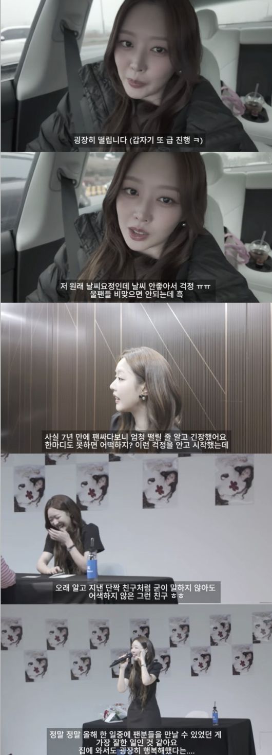 영상 속 미미는 지난해 말 7년 만에 팬사인회를 열어 팬들과 만났다. 팬들을 만나러 가는 길, 미미는 "굉장히 떨린다. 제대로 된 팬사인회는 7년 만인 거 같다. 그래서 긴장이 많이 되고 솔로로 하는 게 처음이다 보니까 엄청 긴장이 되는 상태"라고 토로했다.